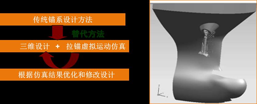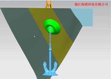 經(jīng)過與國內(nèi)行業(yè)權(quán)威設(shè)計院的合作過,并將該技術(shù)應(yīng)用于船舶建造中,對錨鏈筒、錨臺、錨唇、錨穴、錨、錨鏈、錨機(jī)、止鏈器、導(dǎo)鏈滾輪、船體等進(jìn)行三維設(shè)計和自動建模,實現(xiàn)了三維錨系計,保證了錨系設(shè)計中空間位置定位的準(zhǔn)確性,并通過三維軟件導(dǎo)出二維CAD圖紙,扭轉(zhuǎn)了一直以來二維圖紙與船廠錨系施工脫節(jié)的局面,極大提高了錨系設(shè)計的效率。除此之外,利用軟件的后期的仿真功能,模擬并預(yù)報收錨過程的動態(tài)效果并給出調(diào)整方案。
